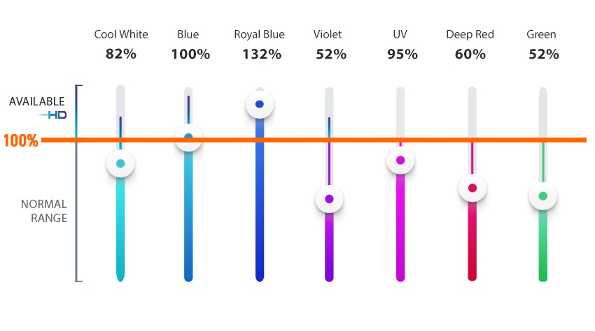 Hydra® Edge Freshwater のスペクトルは、淡水水槽のために特別に設計されています。