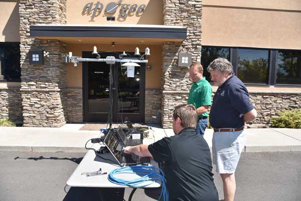 Dr. Bruce Bugbee, Schuyler Smith, and Damon Nitzel preparing the Apogee sensors for monitoring the eclipse. Dr Bugbee will be taking the station to Rexburg, Idaho to make measurements from within the total coverage zone.