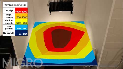 MIGRO uses the quantum sensor to create PAR intensity maps of grow spaces in numerous light and grow space experiments found on the MIGRO YouTube Channel. The PAR maps created in the experiments show the amount of PAR available in each experiment setup.