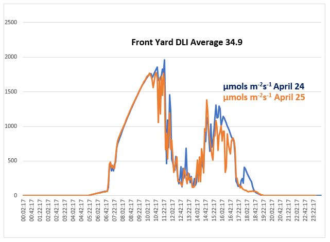 Based off of the data we were able to conclude that the backyard corner would be the better spot for our garden because it provided the most light throughout the day.