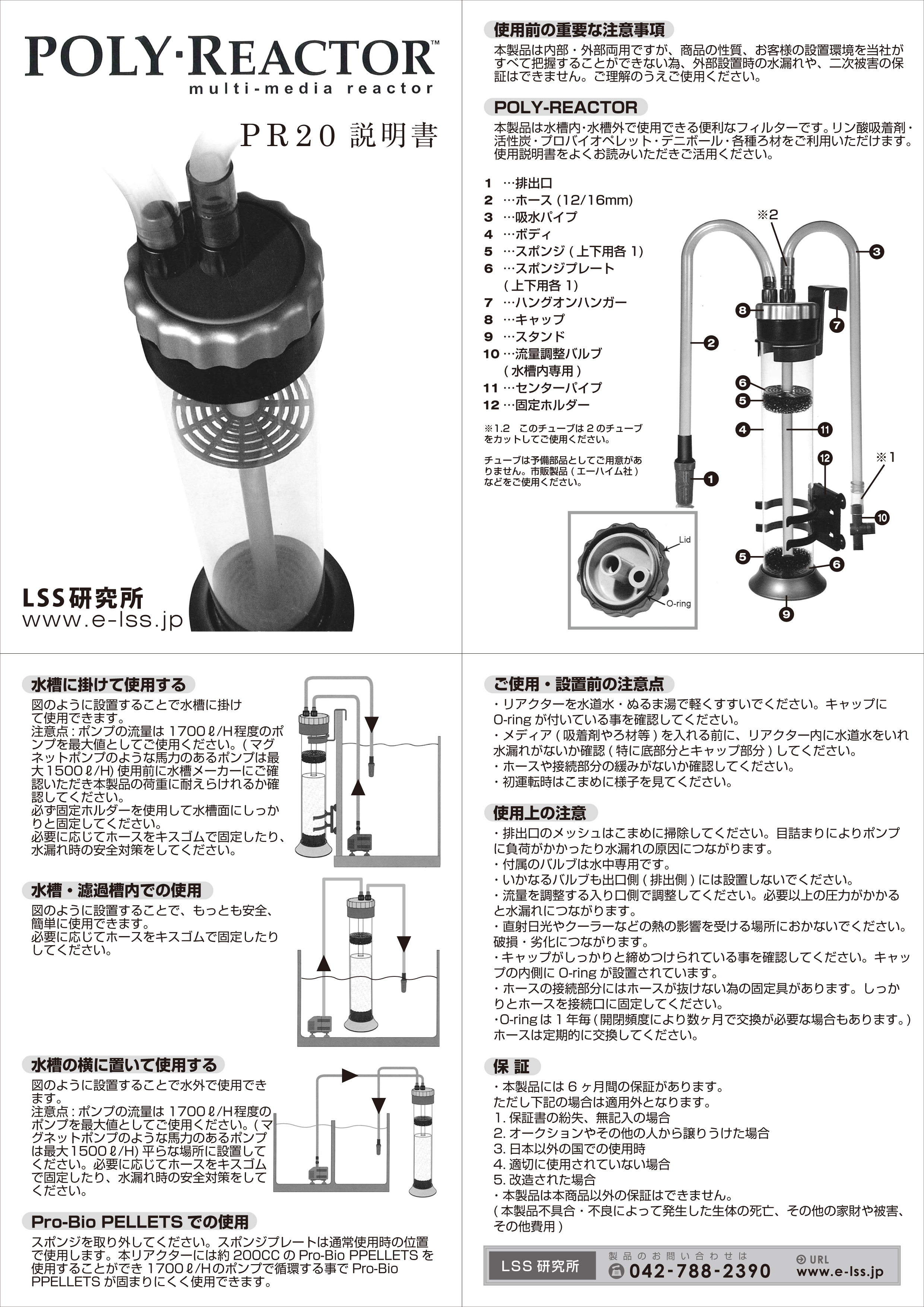 適合ポンプ:PR20 1700L/h (マグネットポンプなどのパワーのあるポンプは1500L/h)