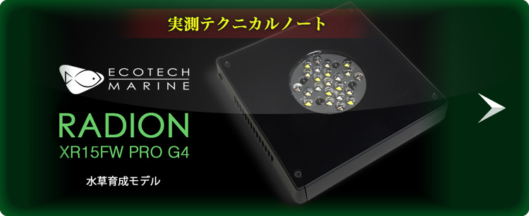 50000台という販売実績(2014.06現在)により確実に進化しているRadion。新しく加わったXR15FWは海水魚用品と思われていたEcotechMarine社のイメージを変えるほどの実力を持った水草・淡水向けのLEDです。