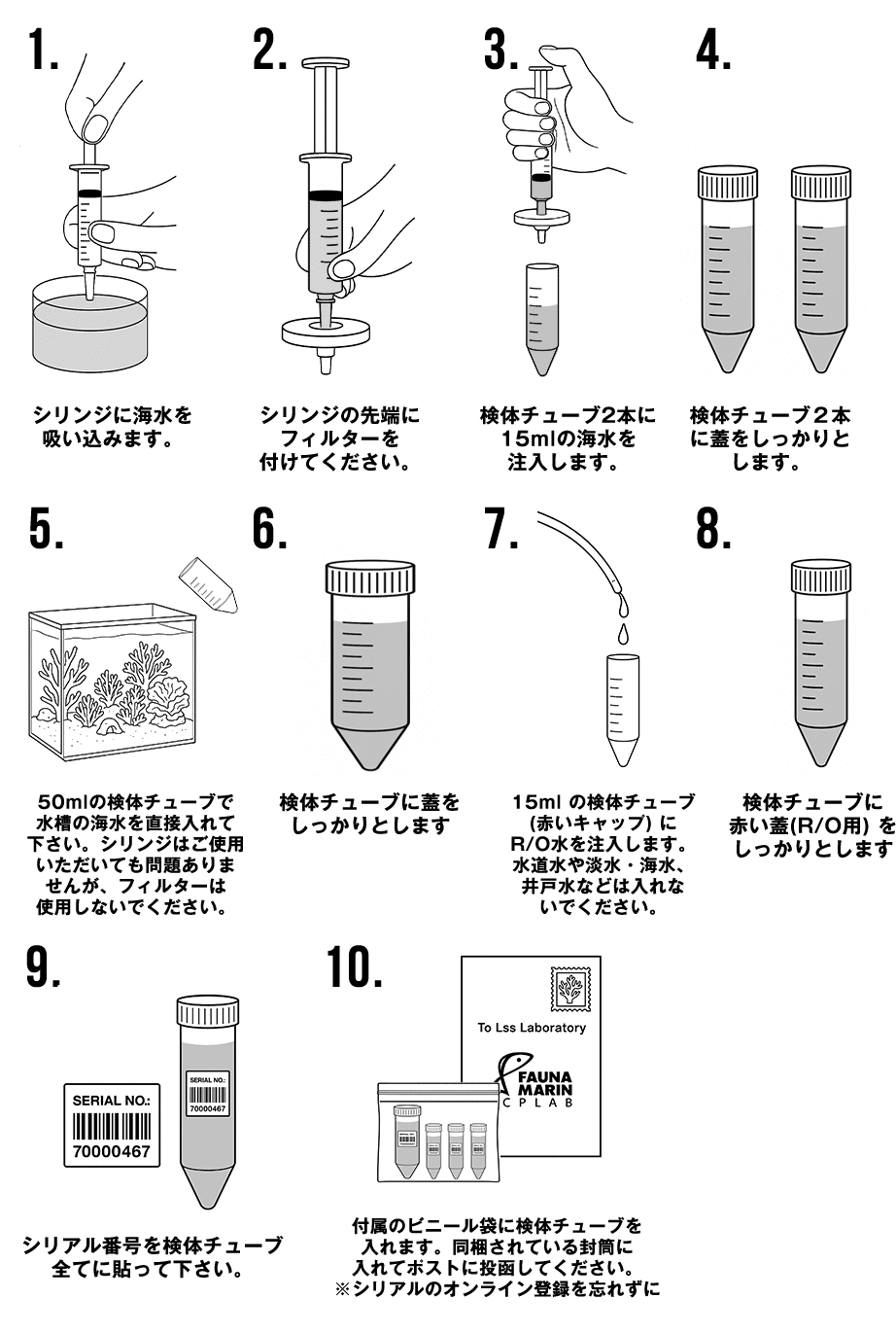 下記より確認して検体を出荷してください。特にReef ICP Total は注意が必要です。