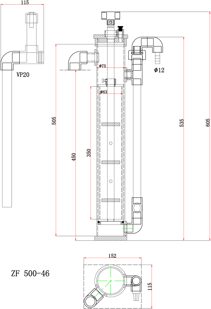 内部式のリアクターです。一般的な水槽に十分対応できるメディアを収納する事ができます。