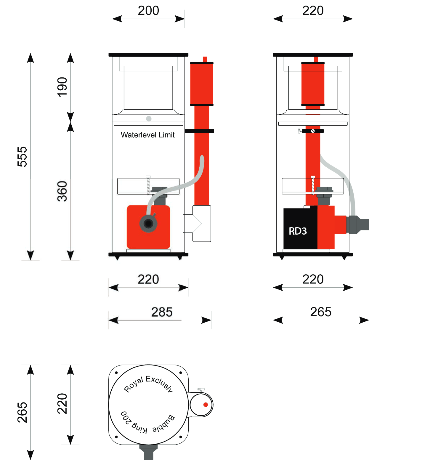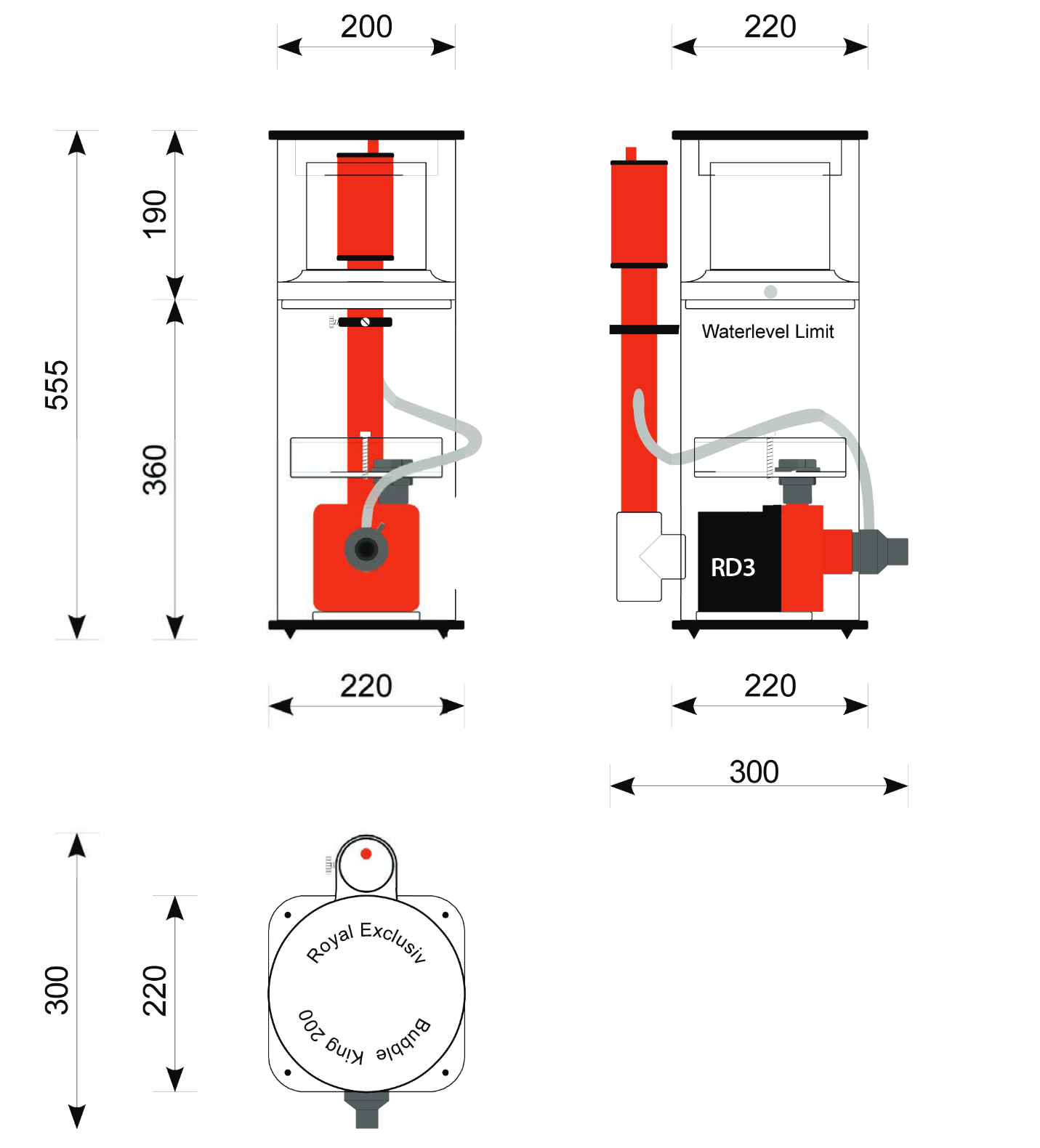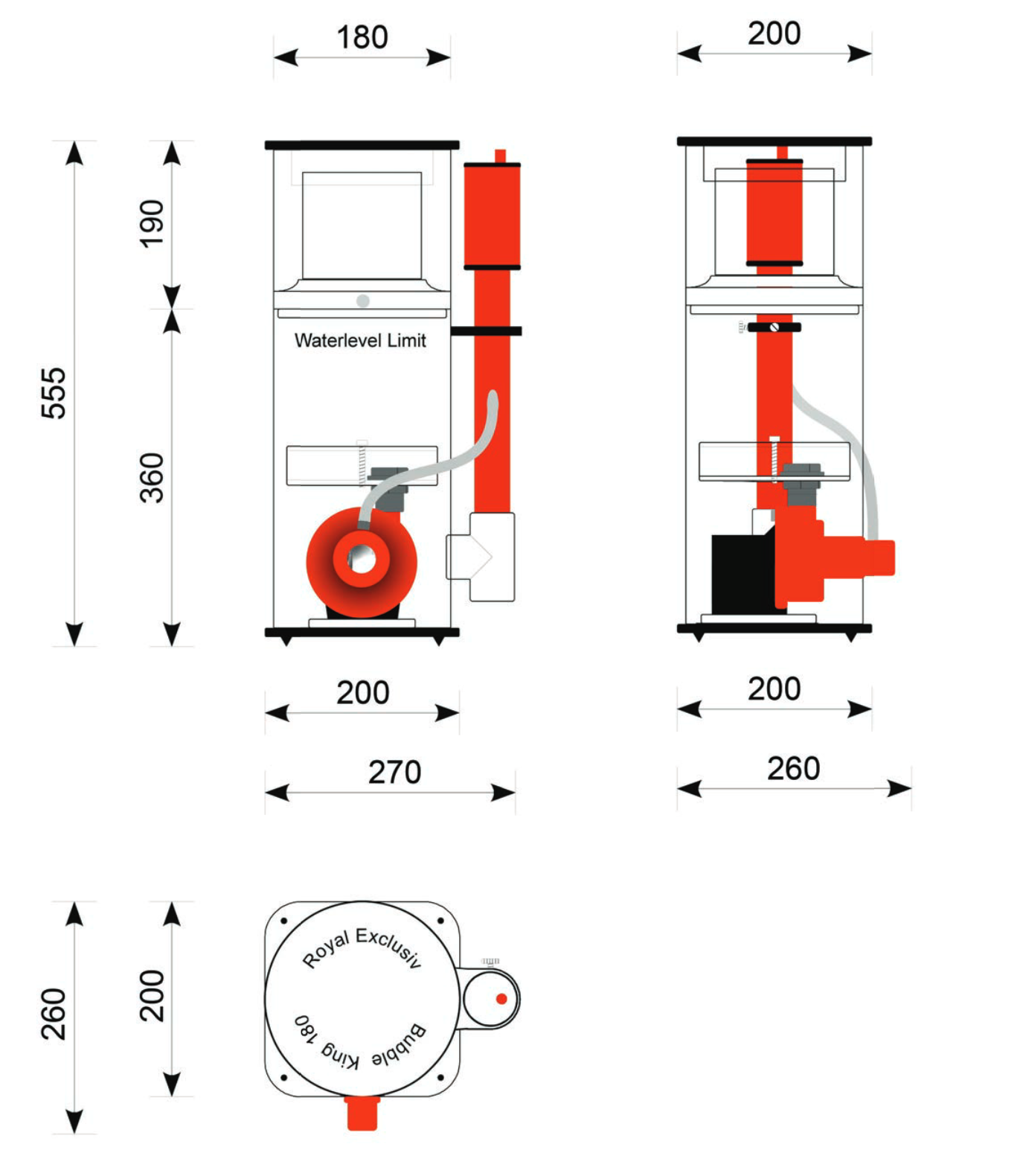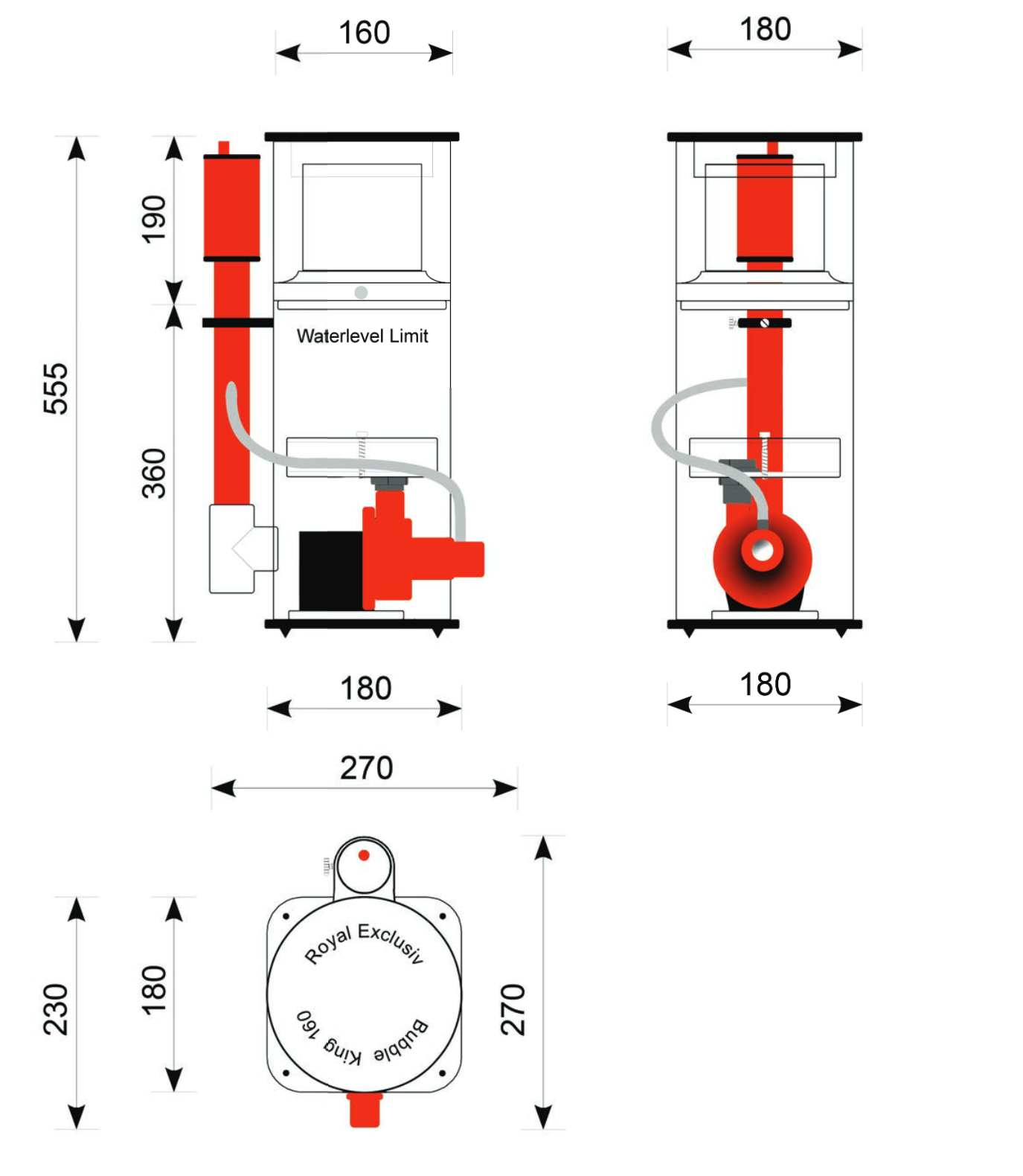 ミニバブルキングはroyalexclusivの看板製品で、省スペースで最高のスキミングを目的に製作されたスキマーです。