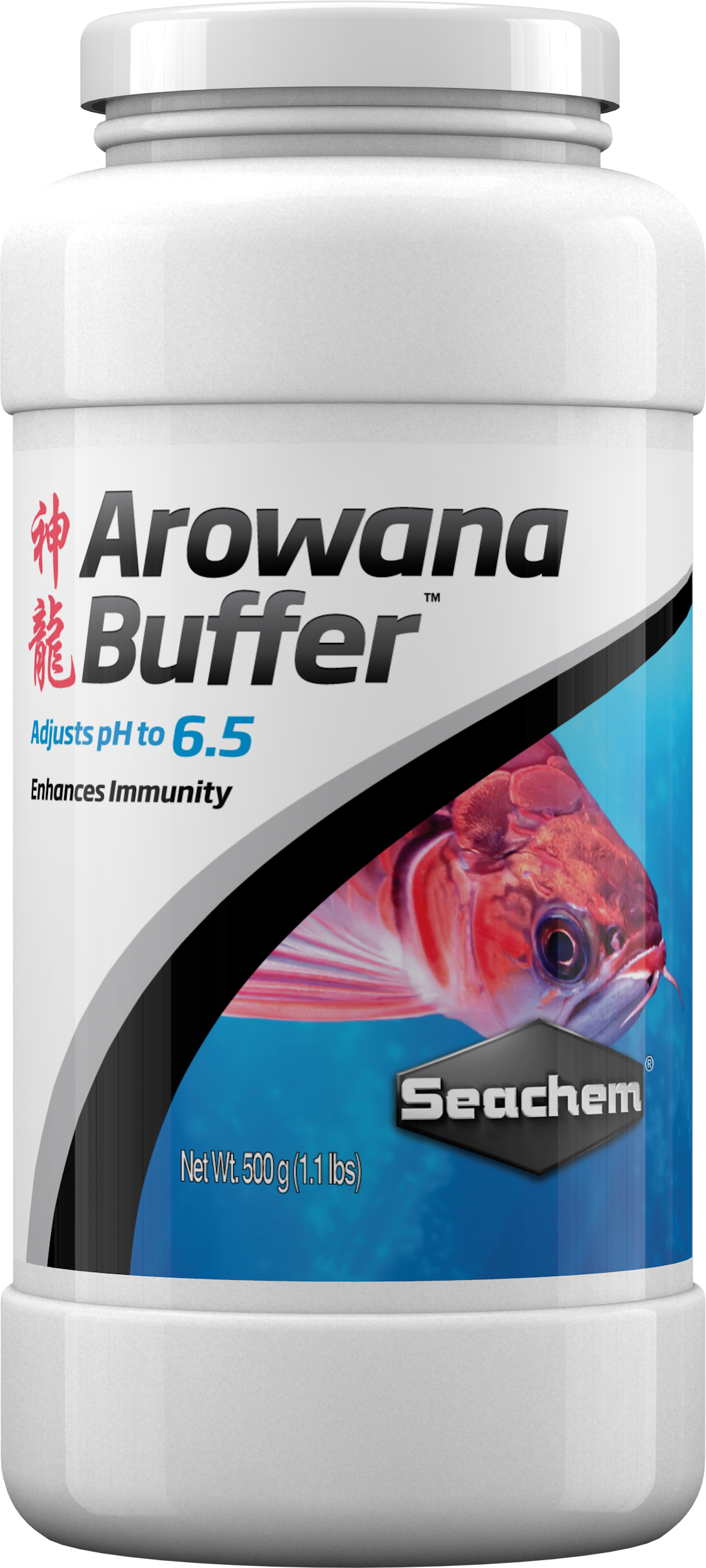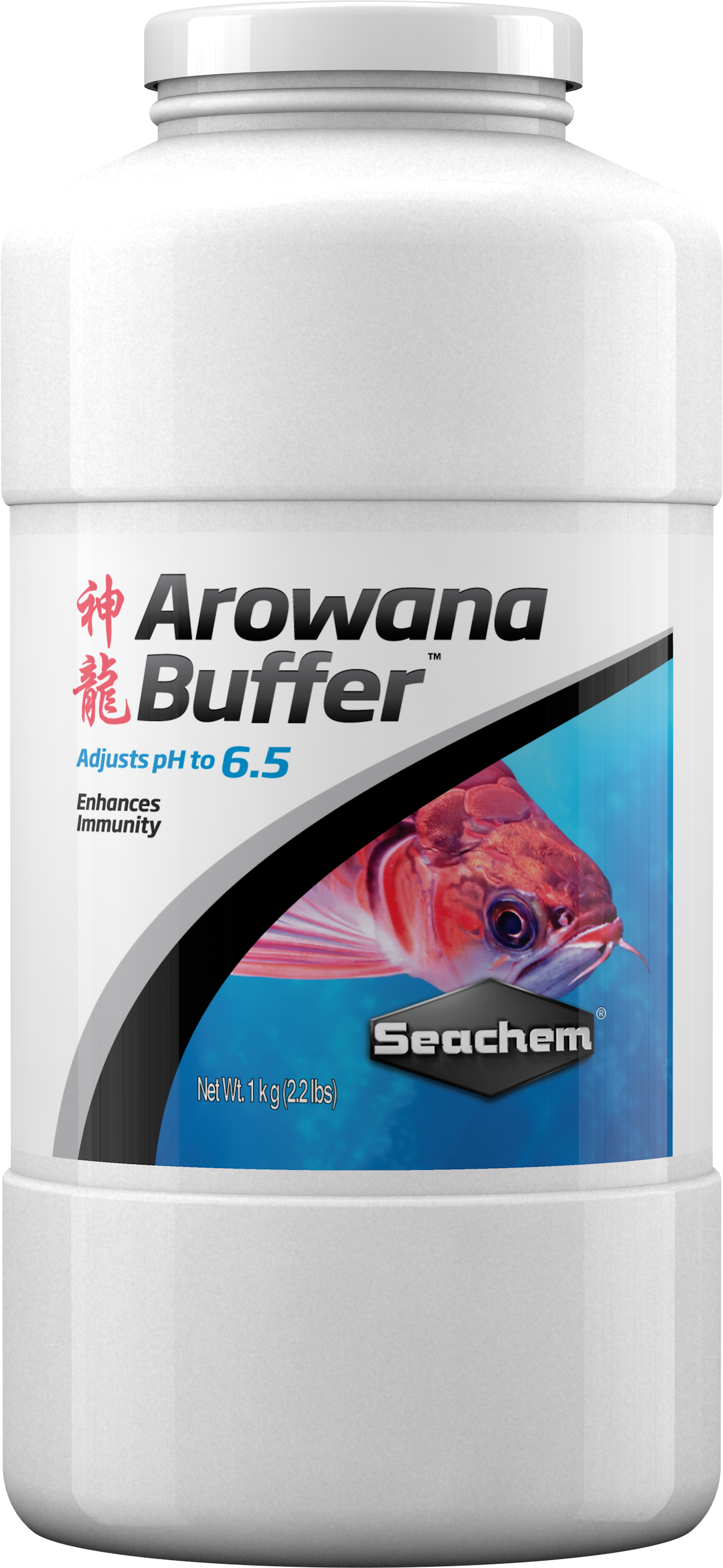 Arowana Buffer™ adjusts pH to 6.5 from either a low or high pH and maintains it there for 2–4 weeks. It safely softens water by precipitating calcium and magnesium. It also supports the ability of arowanas to resist infections. It is the buffer of choice for conditioning water for Asian Arowanas.