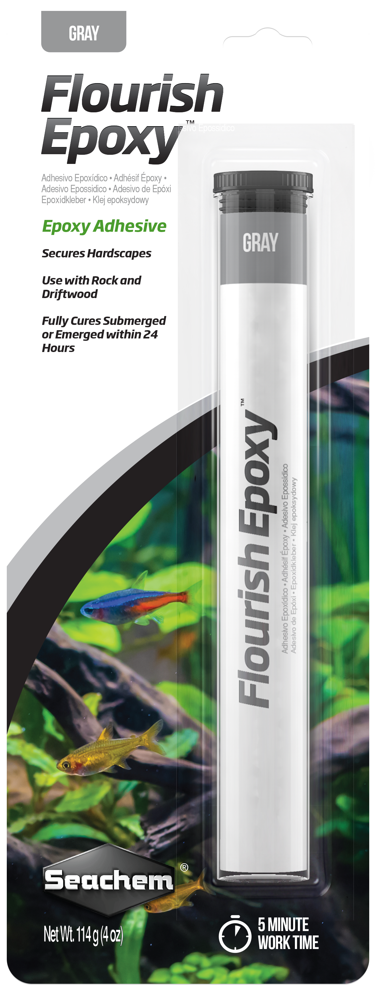 Seachem Flourish Epoxy™ is two-part epoxy putty that can be used during hardscaping to secure materials such as rock and driftwood for more stable foundations in planted aquaria. It has a working time of 5 minutes and fully cures submerged or emerged within 24 hours. Flourish Epoxy™ is ideal for working with stacks of rocks, where collapse could cause damage to plants or the aquarium itself. It is completely safe for aquarium inhabitants.