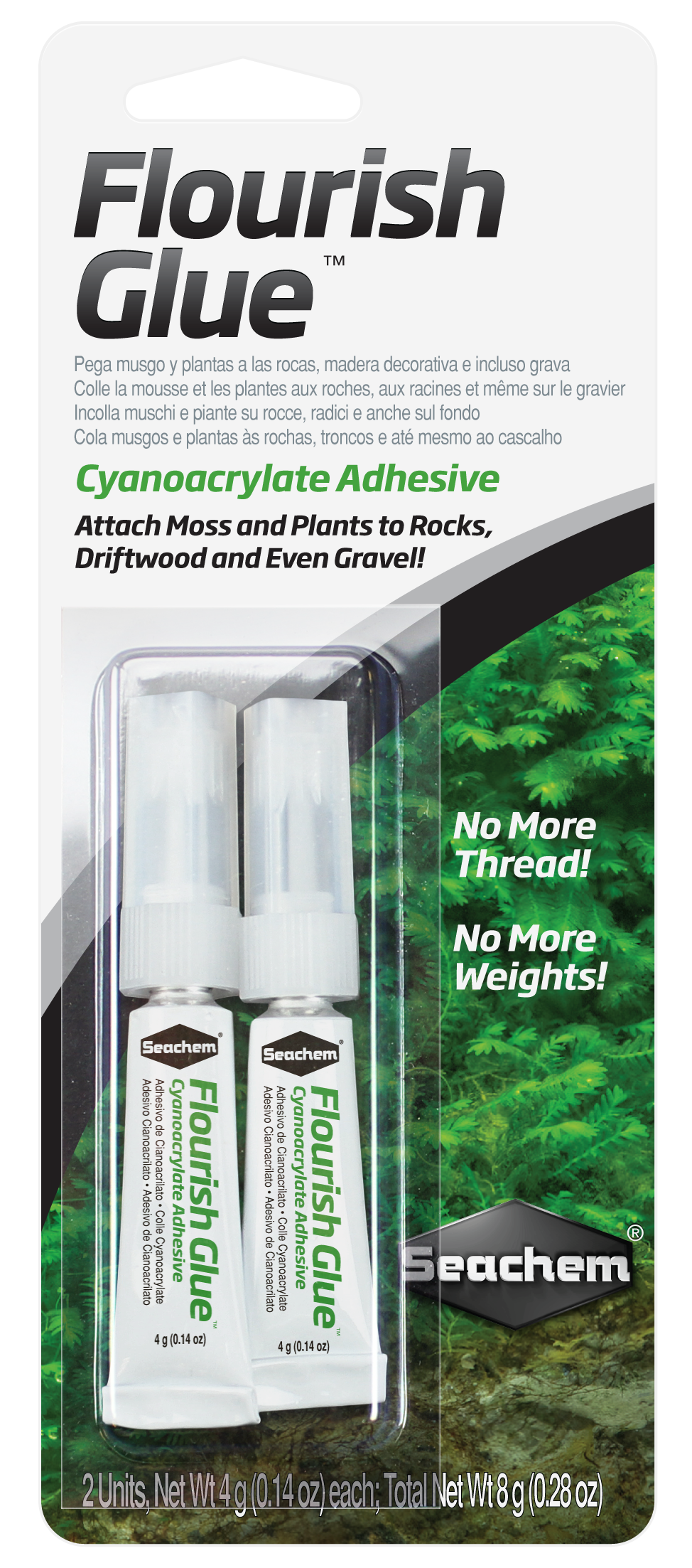 Flourish Glue™ is a superior cyanoacrylate gel for attaching moss and plants to rocks, driftwood, and even gravel. It’s uniquely useful when planting bunch plants. Simply apply Flourish Glue™, plant as usual and the plants stay rooted in the substrate. It bonds within seconds and has excellent control, hold and durability characteristics. It can even be used underwater. Flourish Glue™ can be used for any aquascaping in freshwater or saltwater aquariums or for any plastics repairs. Flourish Glue™ comes in an aluminum tube for extended stability beyond products contained in plastic bottles - it won't dry up in the tube.