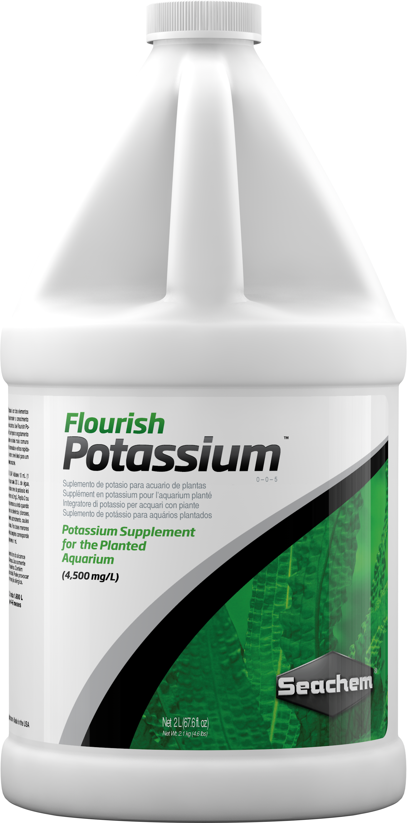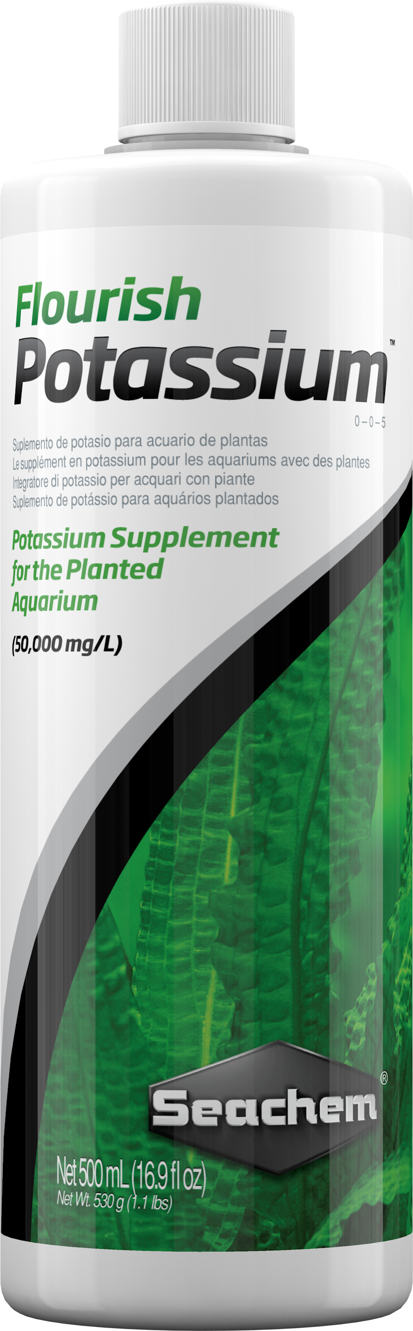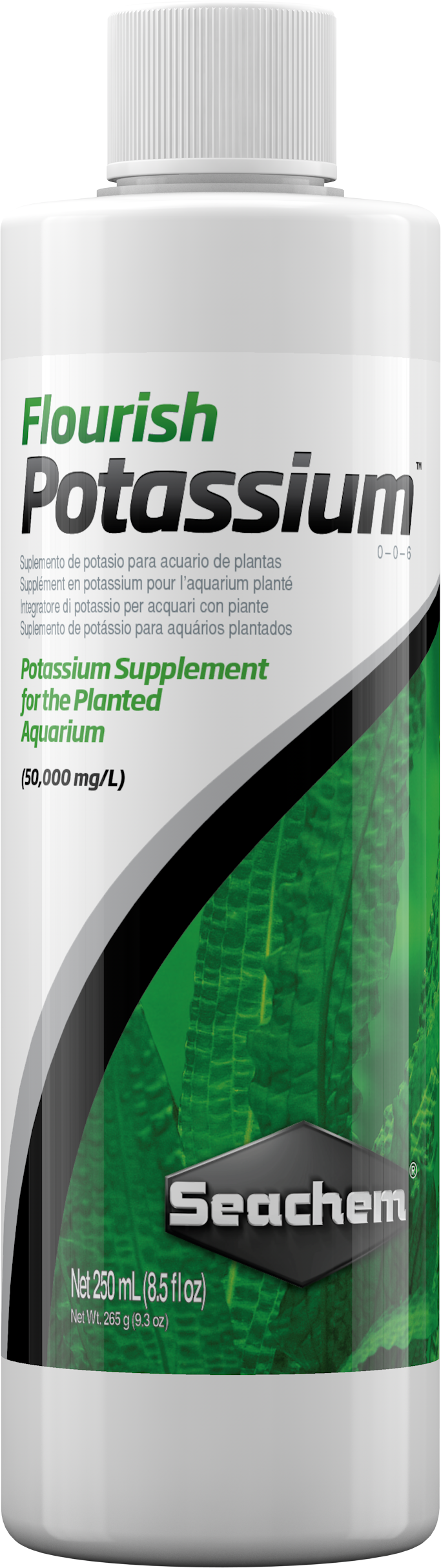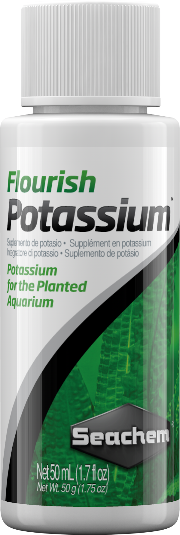 Flourish Potassium は、水草水槽向けに設計された高濃度(50,000 mg/L)のカリウム添加剤です。 カリウムは水草の健全な成長に不可欠な主要栄養素の一つであり、急速に成長する水槽やミネラル分の少ない水を使用している場合には、カリウムが不足 しやすくなります。このような状況では、カリウムが成長の制限要因となる可能性があります。 カリウム不足の兆候としては、古い葉の黄変(クロロシス)、組織の壊死(褐変)、葉に小さな穴が開く、茎や根の弱体化などが挙げられます。 これらの症状を防ぐために、Flourish Potassium を定期的に使用することで、最適な成長環境を維持することができます。