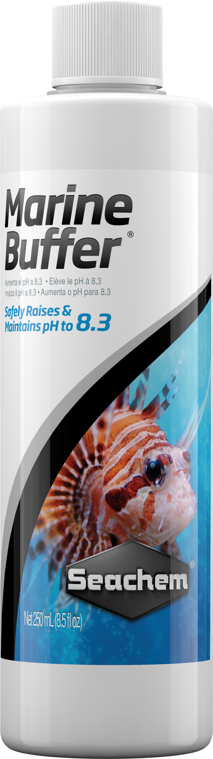 Liquid Marine Buffer® will safely raise marine pH to 8.3 while adjusting alkalinity. It will not raise pH above 8.3 even if inadvertently overdosed. Liquid Marine Buffer® contains a balanced blend of bicarbonate, carbonate and borate salts designed to raise pH and restore disrupted buffer systems to the proper balance. Use Seachem’s MultiTest™ Marine pH & Alkalinity to check pH and total alkalinity. Use Marine Trace™ to restore the proper level of trace and feed NutriDiet® Marine Flakes for thriving, healthy saltwater fish.