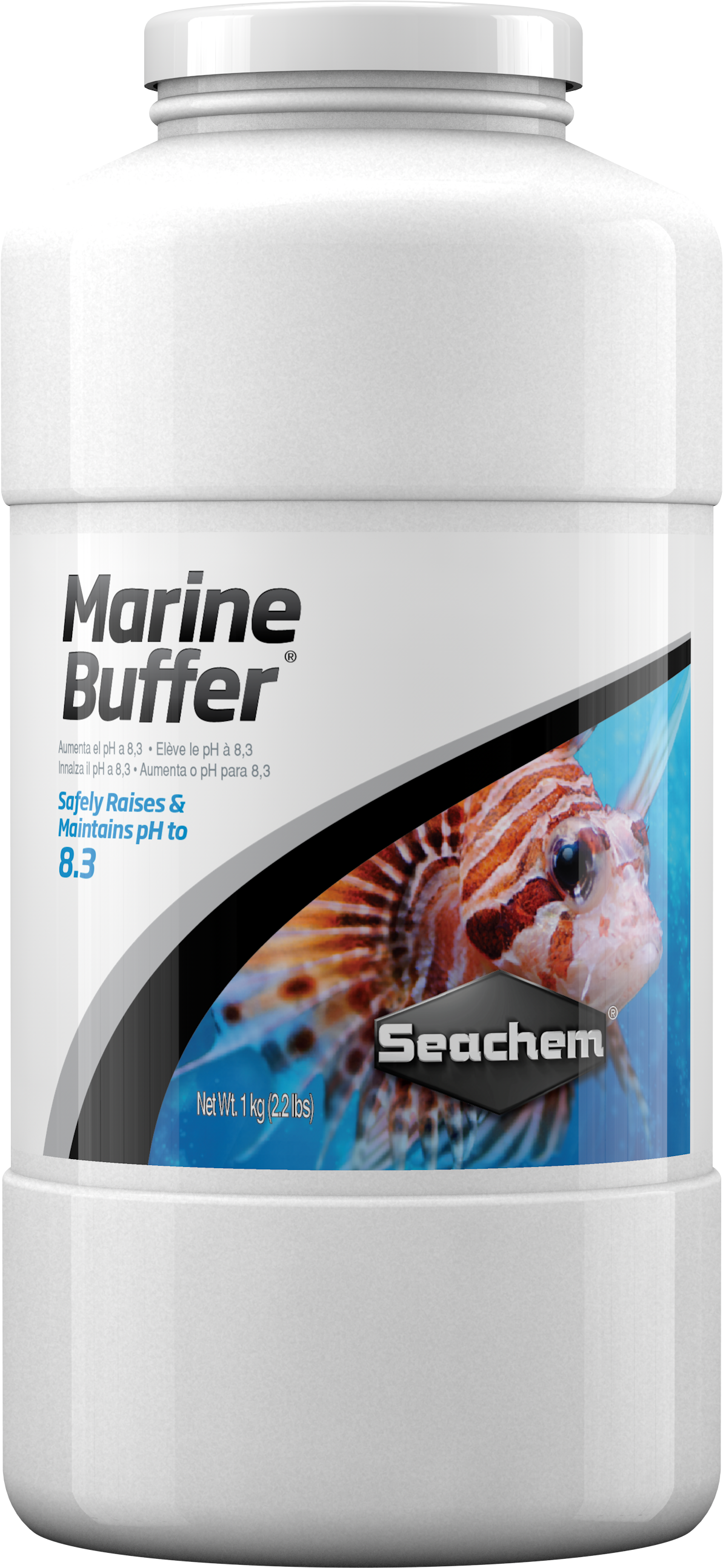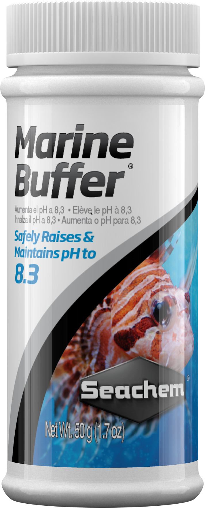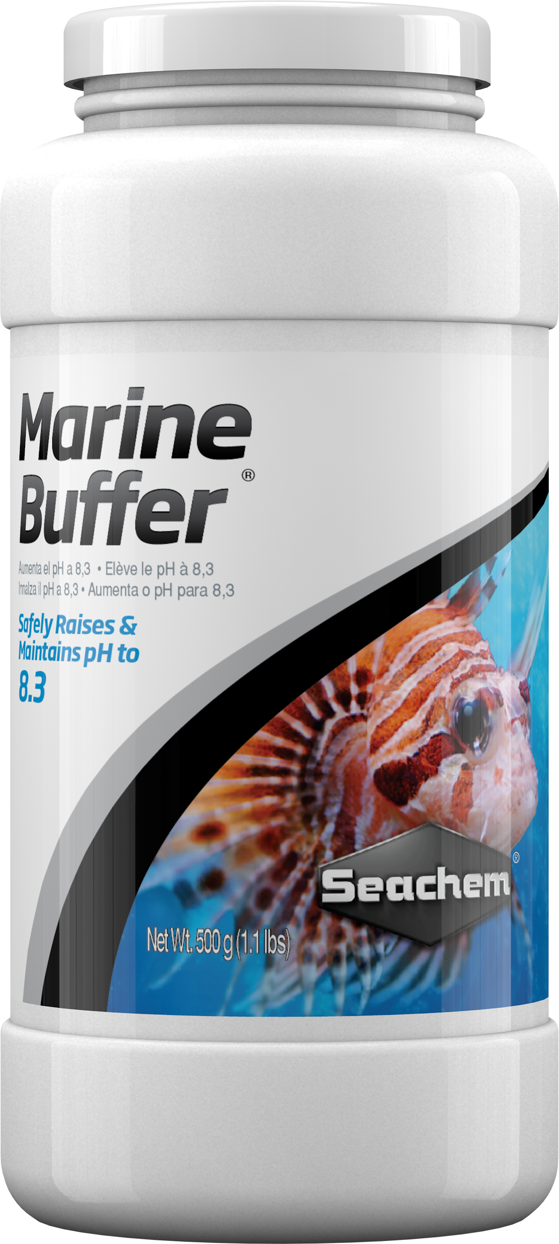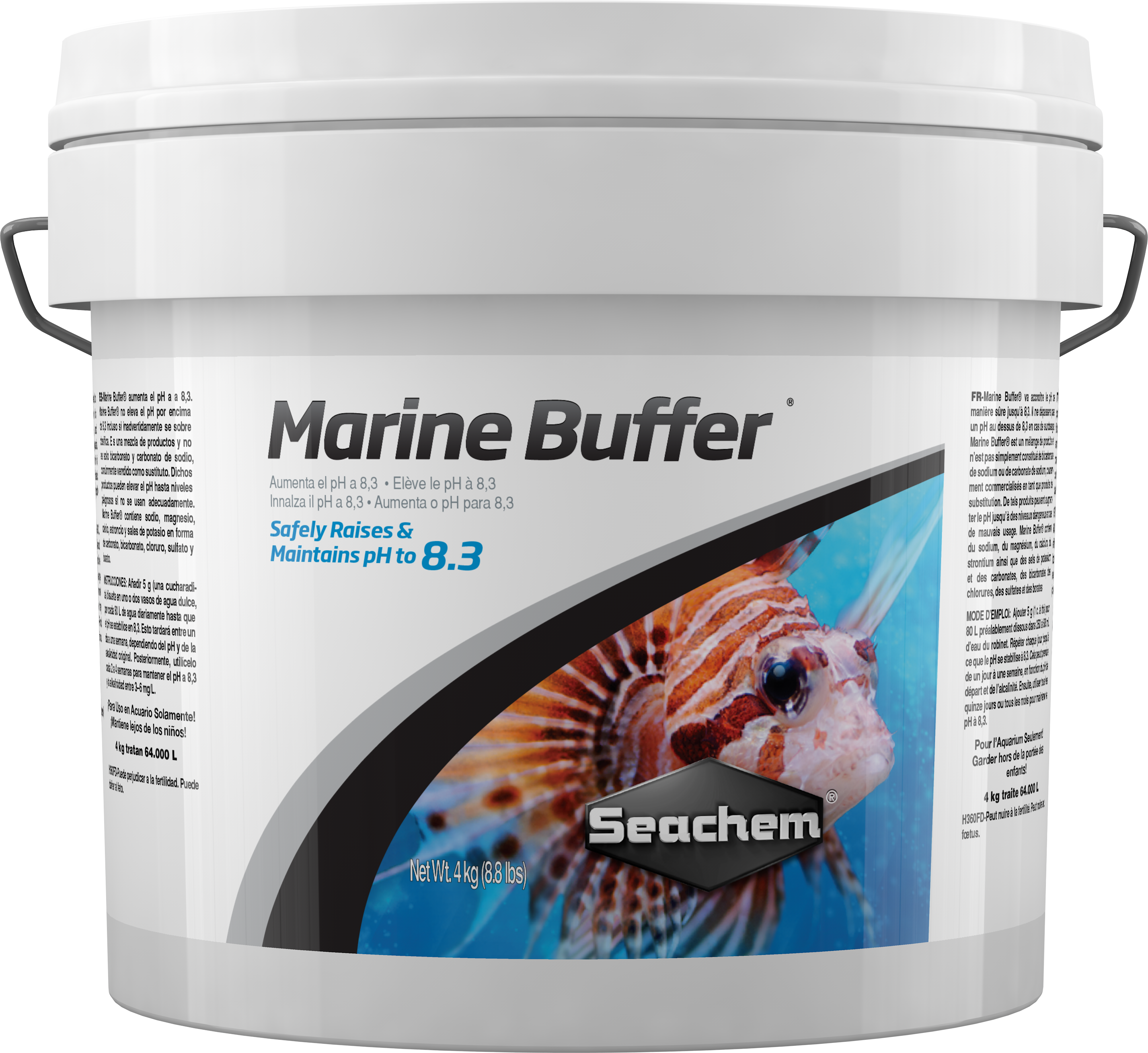 Marine Buffer® will safely raise marine pH to 8.3. It will not raise pH above 8.3 even if inadvertently overdosed. Marine Buffer® is a blended product and is not just sodium bicarbonate or sodium carbonate, commonly sold as a substitute. Such products can raise pH to dangerous levels if not used properly. Marine Buffer® contains sodium, magnesium, calcium, strontium, and potassium salts of carbonate, bicarbonate, chloride, sulfate, and borate. Use Seachem’s MultiTest™ Marine pH & Alkalinity to check pH and total alkalinity. Use Marine Trace™ to restore the proper level of trace and feed NutriDiet® Marine Flakes for thriving, healthy saltwater fish.