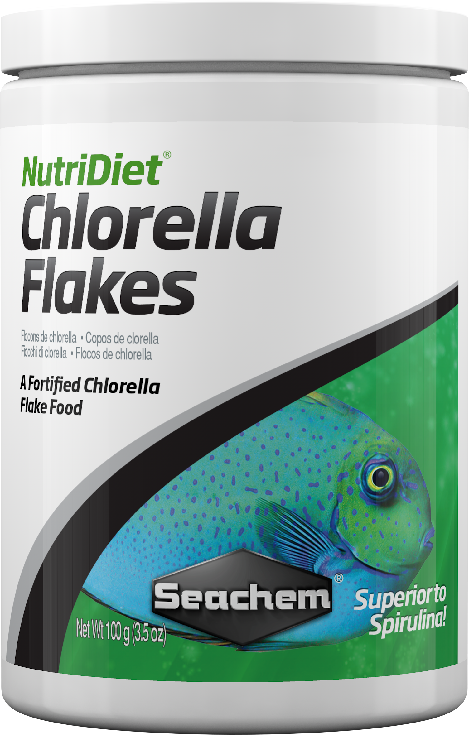 NutriDiet® Chlorella Flakes is a fortified Chlorella flake food for all freshwater and marine fish. Chlorella Algae is considered to be a potential super food and is included in every NutriDiet® Flake formula for its extremely high nutrient content. It is overflowing with enzymes, minerals, vitamins, amino acids, and all other nutrients essential to animal life. As a dietary supplement and base diet for herbivores, it is far superior to the Spirulina algae used in many flake foods. NutriDiet® Chlorella contains GarlicGuard™ contain GarlicGuard™ as an appetite stimulant.