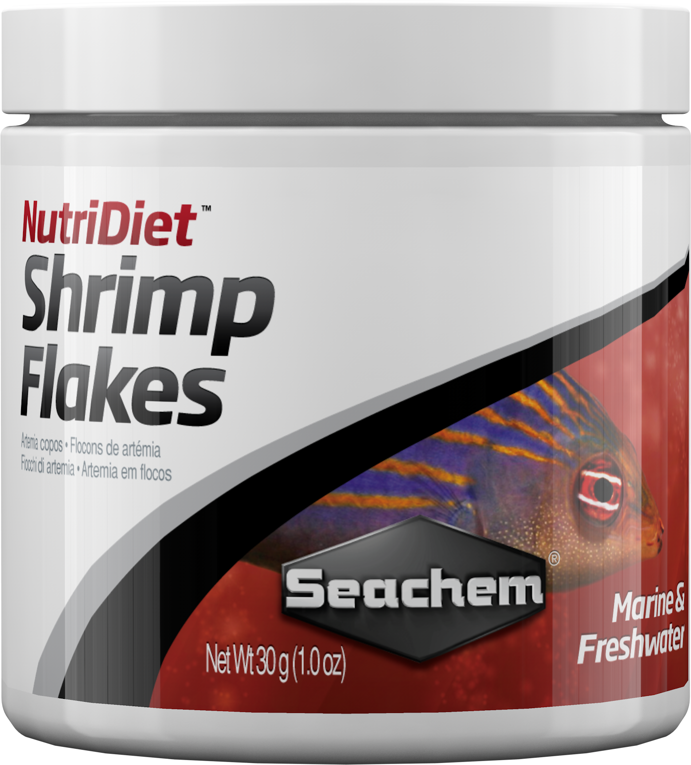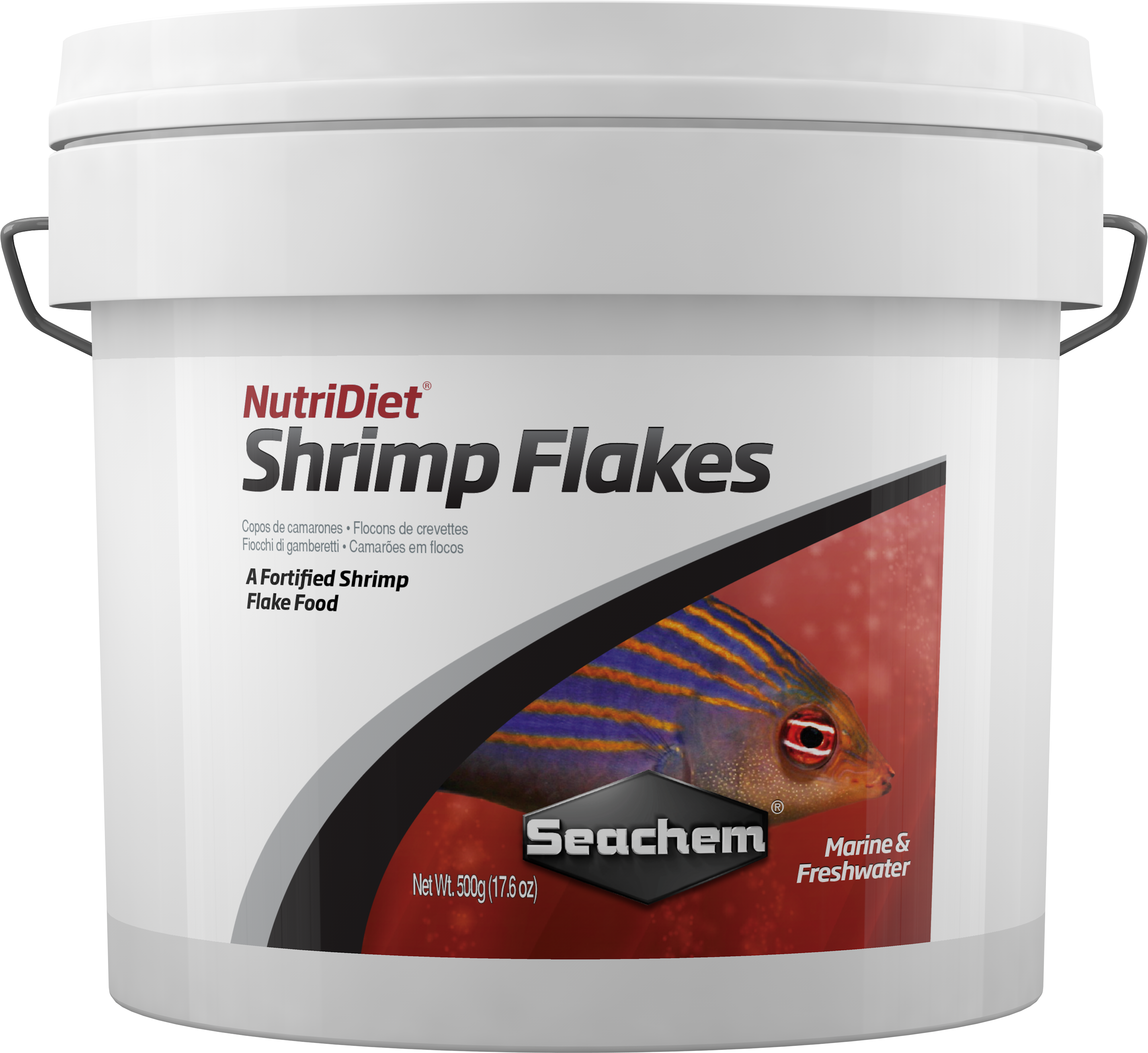 Also included in Shrimp Flakes is Seachem GarlicGuard™ as an attractant and appetite stimulant. Vitamin C is an especially important factor in the growth and health of aquatic animals, and is present in high levels in NutriDiet® Shrimp Flakes. This vitamin is a cofactor in the processes necessary for the formation of connective tissue, scar tissue in wound repair, and bone matrix.