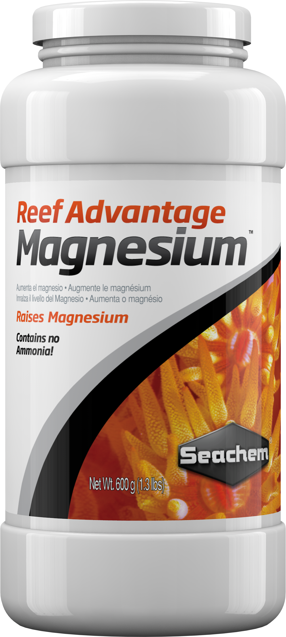 Reef Advantage Magnesium™ is a concentrated (80,000 ppm) optimized blend of magnesium, chloride, and sulfate salts designed to restore depleted levels of magnesium with minimal impact to the ionic ratios found in natural sea water. Reef Advantage Magnesium™ contains no ammonia. This is a common contaminant in every liquid magnesium supplement on the market.