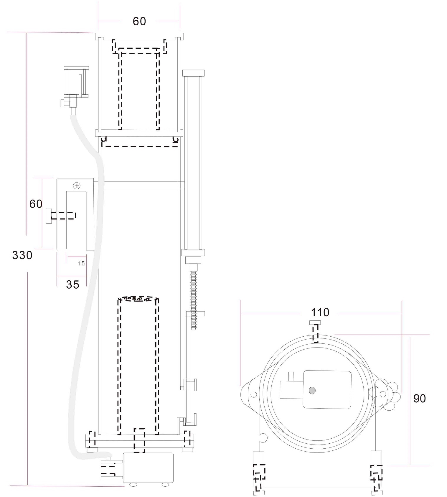 縦長デザインは泡と飼育水の反応時間を増やし、汚れをより多くとります。