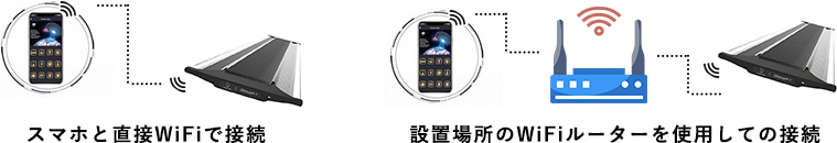 WiFiは2つの方法で接続可能で、データー通信を伴わない(携帯電話会社のデーター通信を使用しない)方法と、設置場所のWifiを 利用する方法の2つからお選びいただけます。